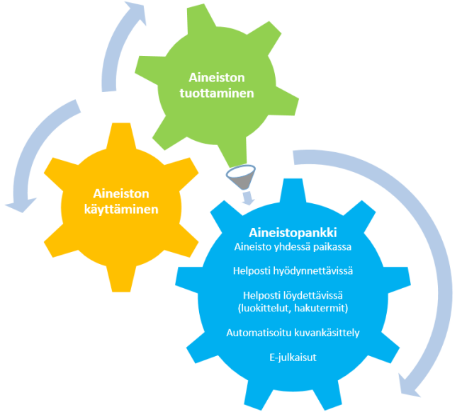 - sisältää monipuoliset aineistokoritoiminnot: aineiston suojattu jakelu, pysyvät tallennetut korit, julkinen kori esimerkiksi www-sivulle upotettuna